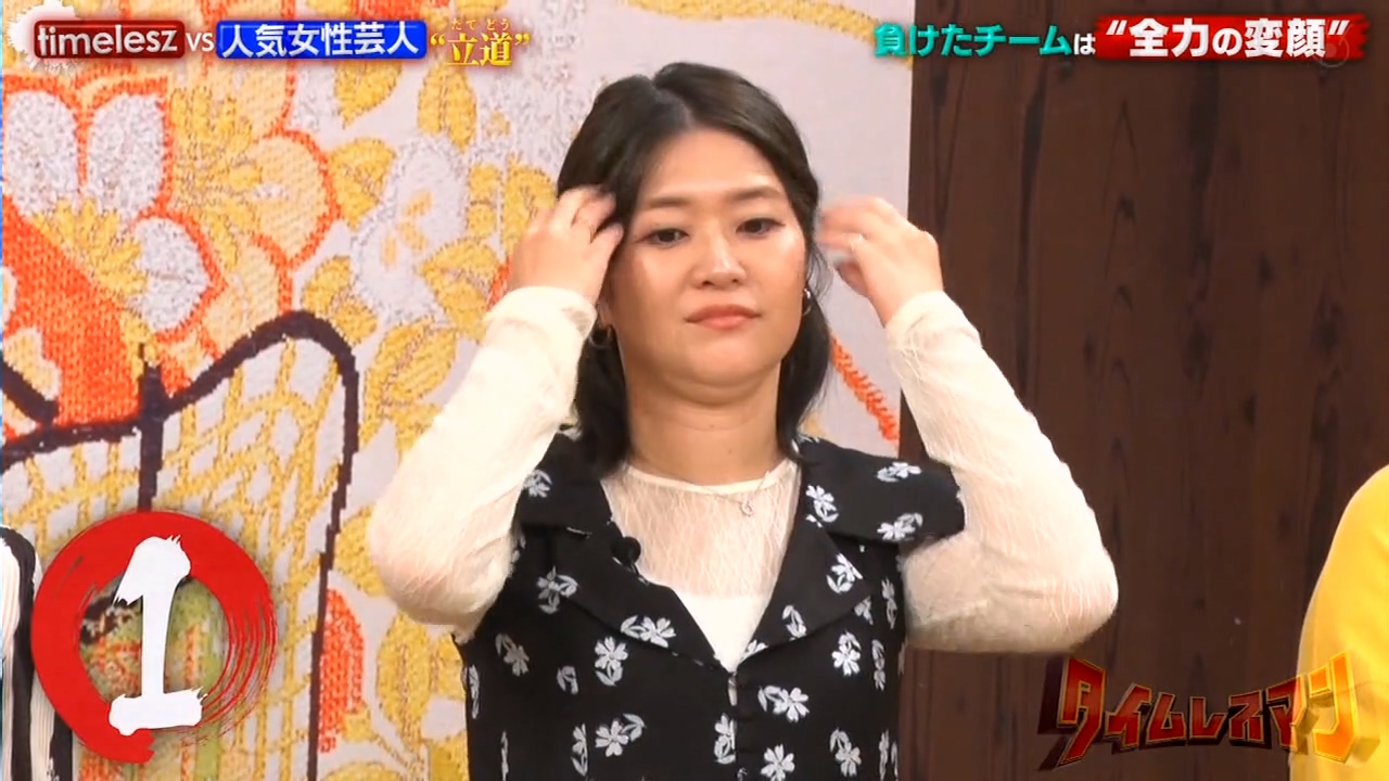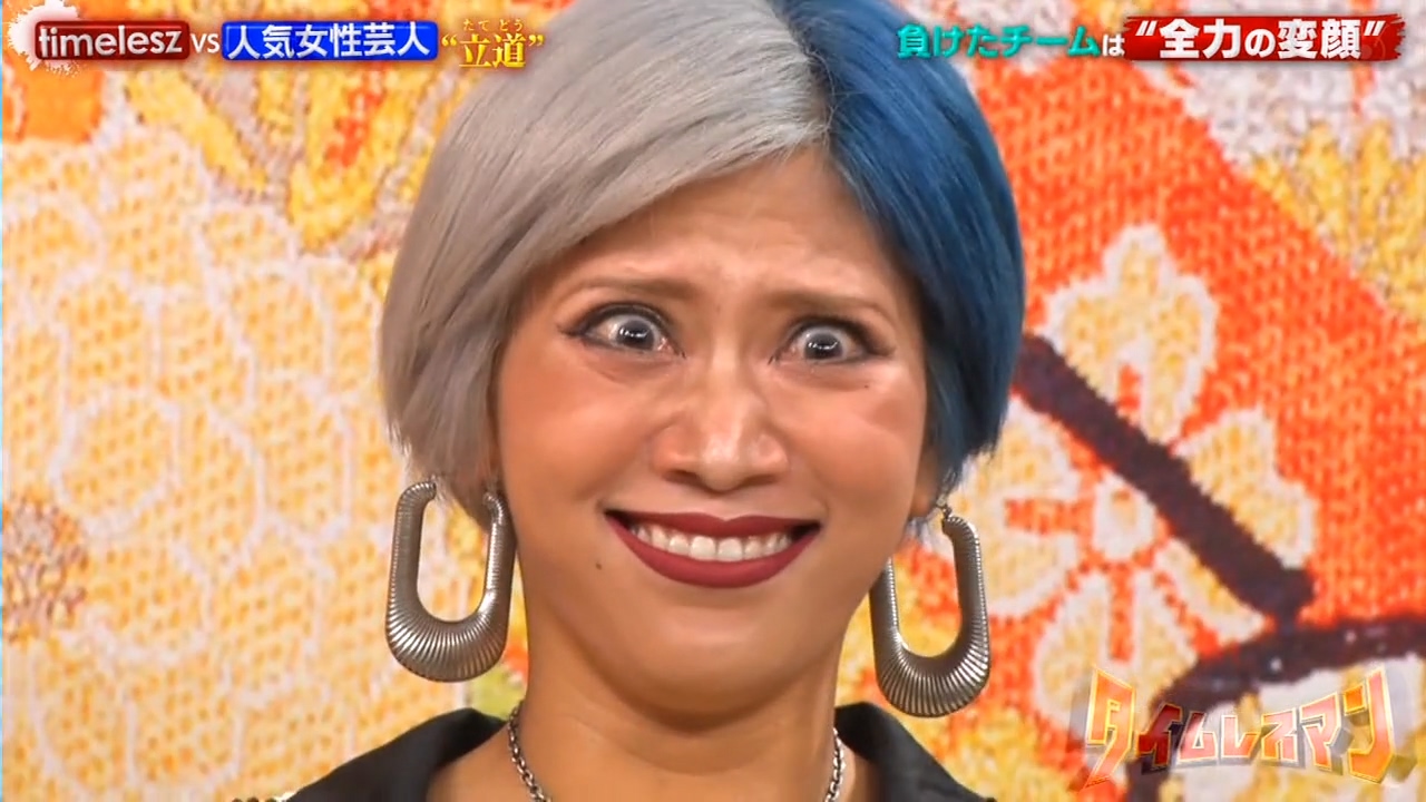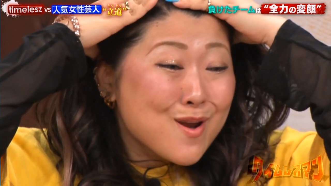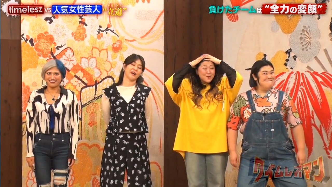 9/23「タイムレスマン」で稲田美紀と熊元プロレス(紅しょうが)、信子と金子きょんちぃ(ぱーてぃーちゃん)が変顔