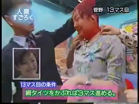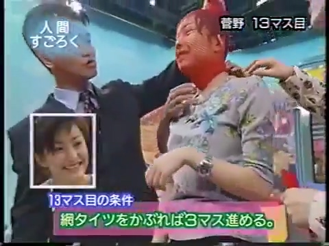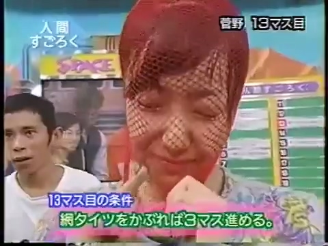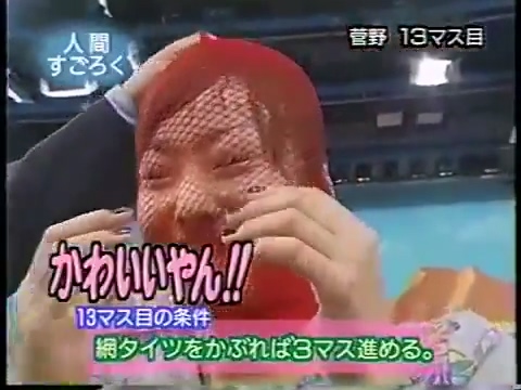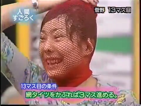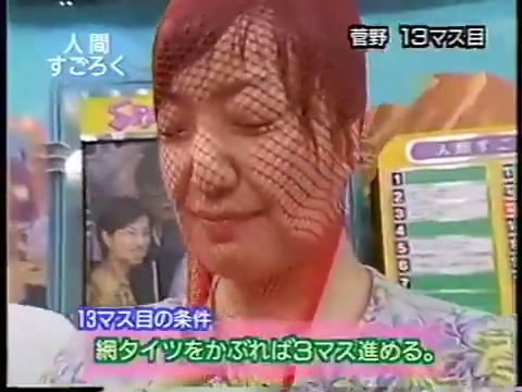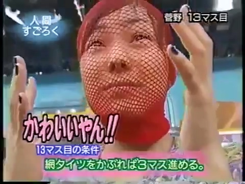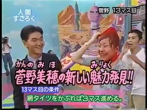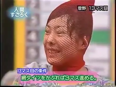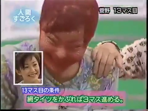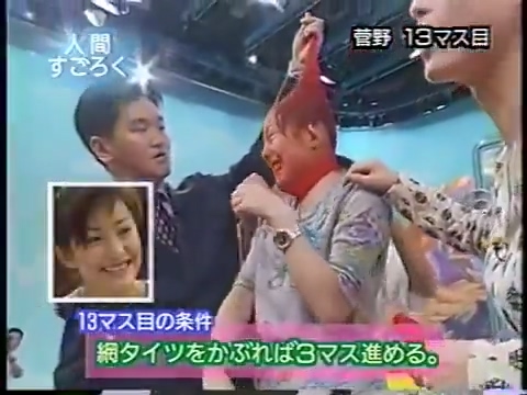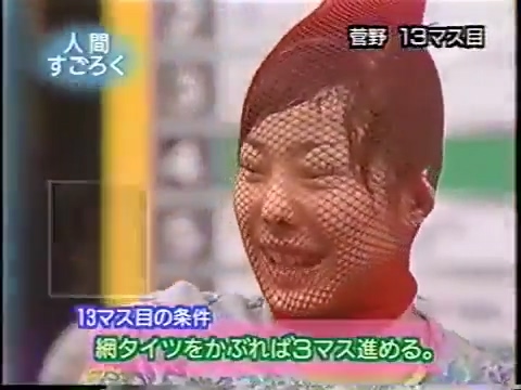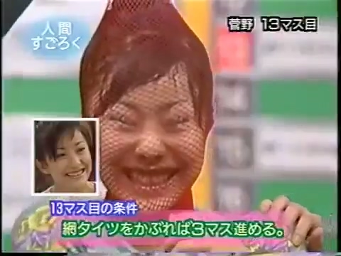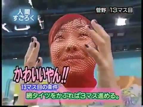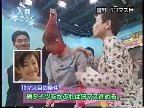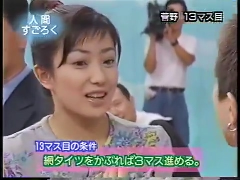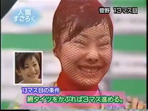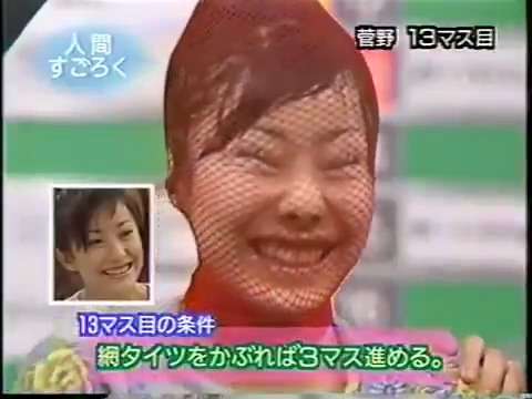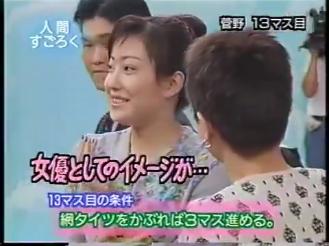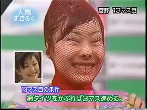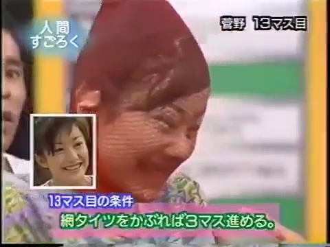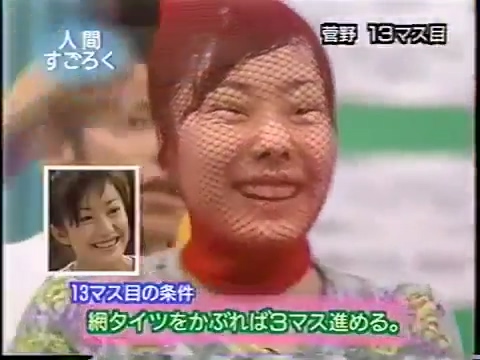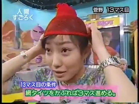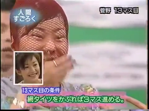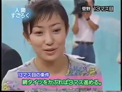 1997/9/25 日テレ「スーパークイズスペシャル」で菅野美穂が網タイツを被る(当時20歳)
