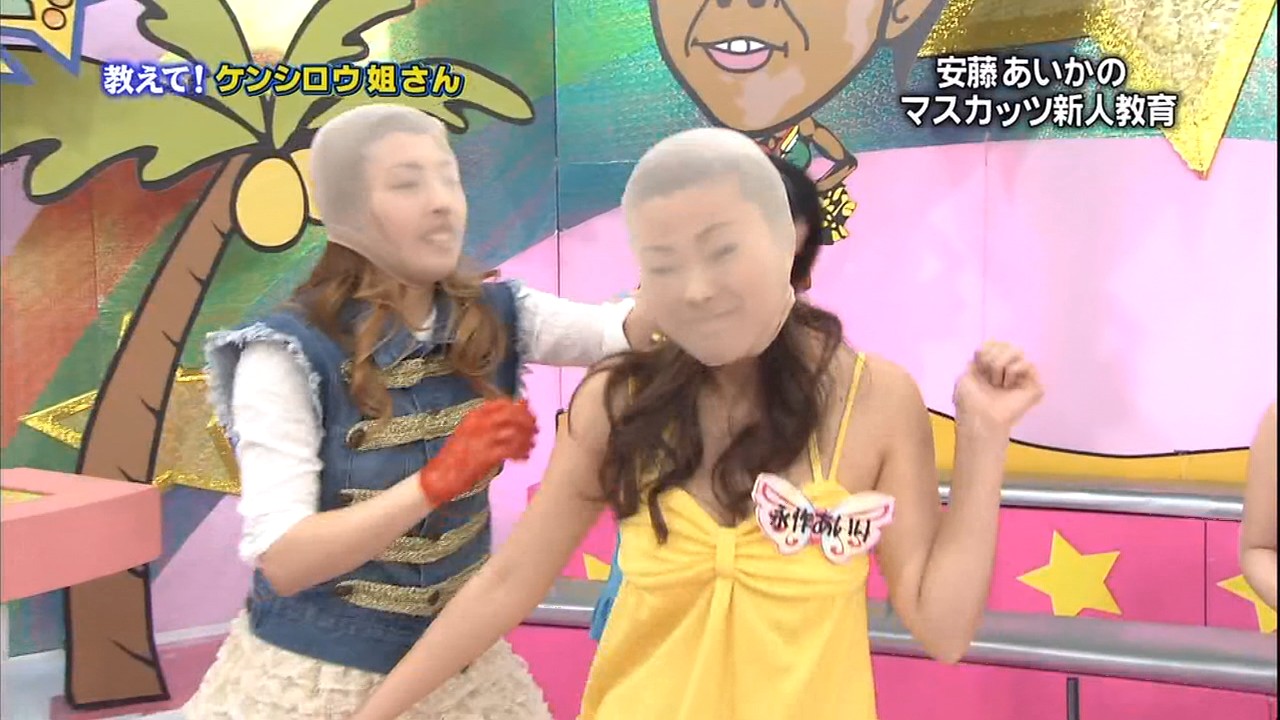 5/25深夜 『おねだりマスカットDX』より。安藤あいかと永作あいりがパンスト被り