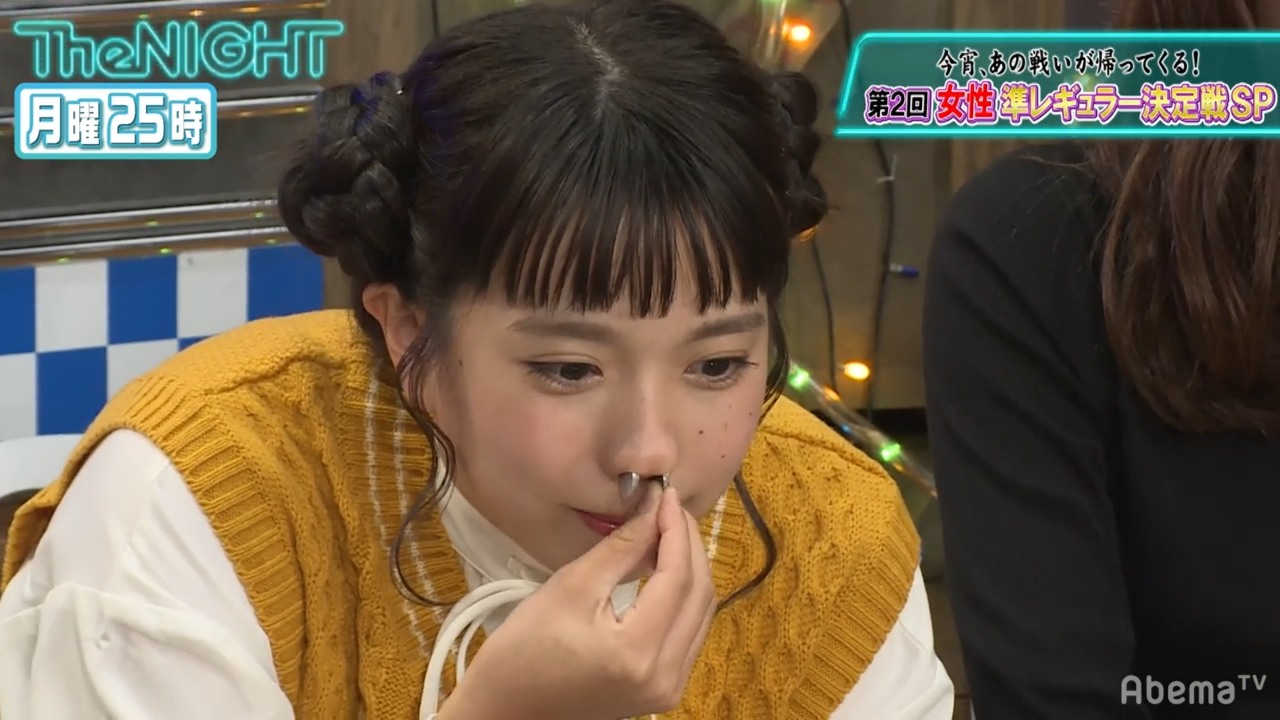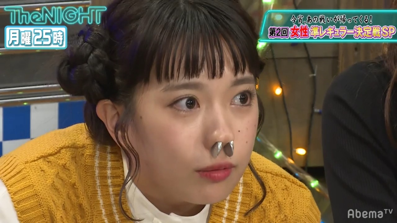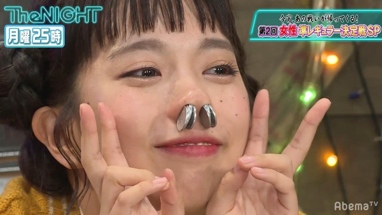 10/22 AbemaTV「月曜The NIGHT」#130で朝日奈央と三田寺理紗が鼻にお金入れて変顔