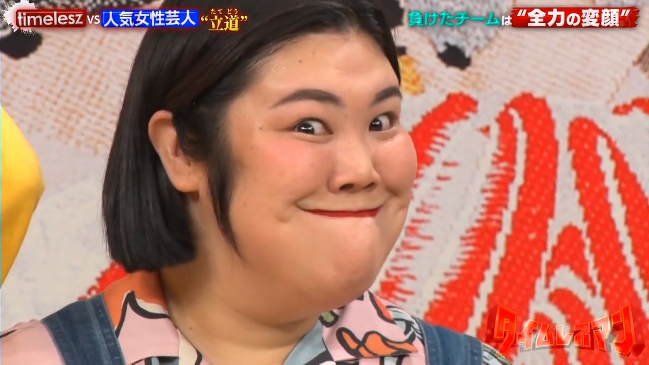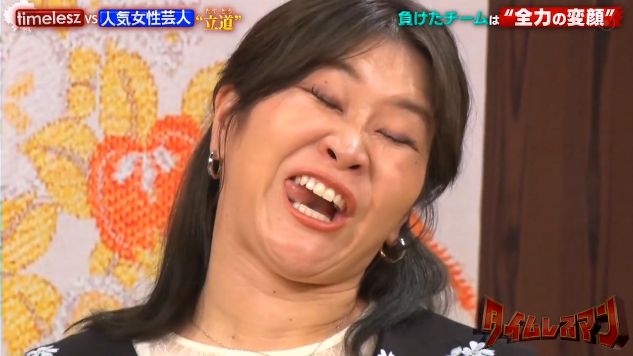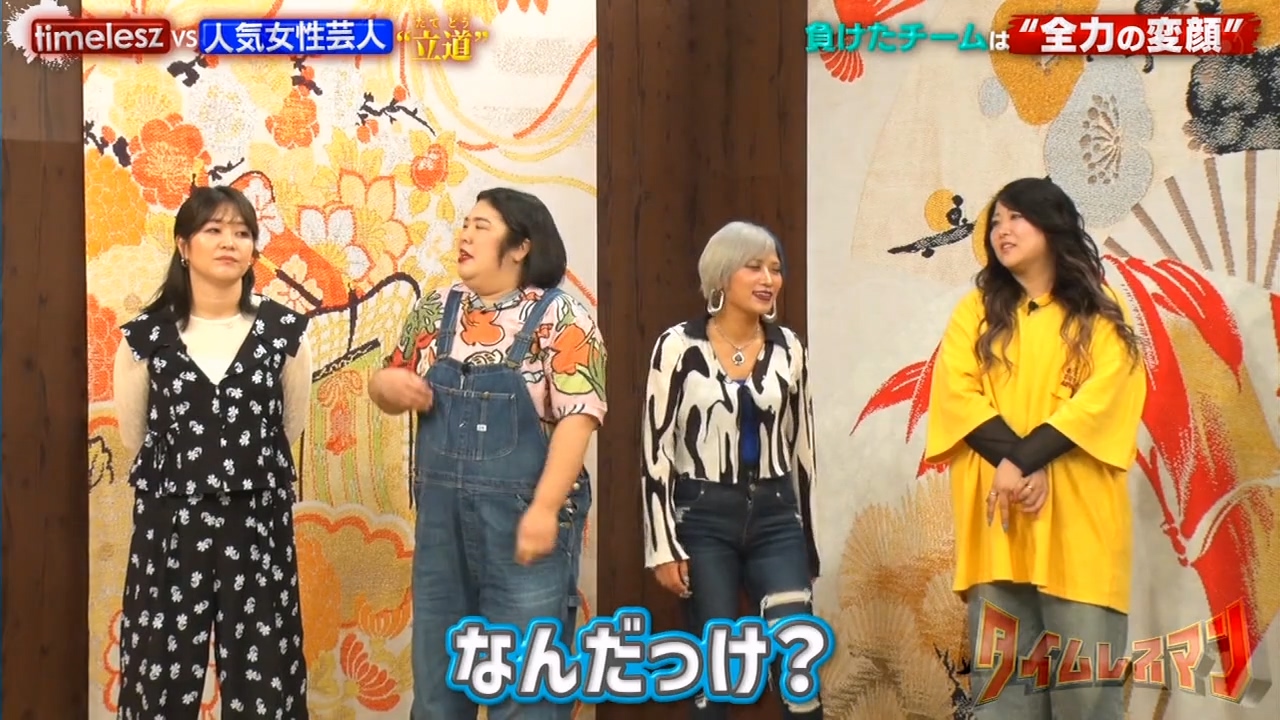 9/23「タイムレスマン」で稲田美紀と熊元プロレス(紅しょうが)、信子と金子きょんちぃ(ぱーてぃーちゃん)が変顔